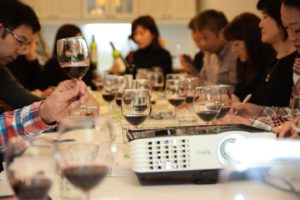 私も試しにテイスティング。鼻を近づけると、Zinfandelにありがちな、強烈な甘い香りが上がってこないので、びっくり。控えめで上品な香り。口に含んでも、まず最初に来るはずの強烈な果実味がなく、ここも少し上品な感じ。酸味とタンニンは予想通り、穏やか。Zinfandelらしく、果実味の主張が特徴だけど、少し控えめなので、女性も飲みやすいのでしょう。
