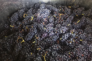 このワインは、ボジョレー・ヌーボを作るのと同じ「マセラシオン・カルボニック」という手法で作られています。専門的になるので、詳しい説明はしませんが、この手法は、破砕しないブドウをそのままタンクに入れて発酵させること、このため果皮や種子に含まれる色素やタンニンが果汁に抽出されないこと、従って、味わいはフルーティーで軽いにも関わらず重厚な黒っぽい色身を出すことがで来ることが特徴です。ボジョレー・ヌーボが短期間で出荷可能なのはこの手法を使っているからなんです。