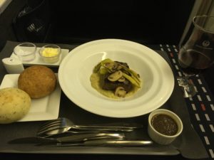 そして口に含むと、適度な果実味と酸味が印象的です。タンニンは滑らか。しばらくすると少し抑え気味のペッパーの様な味も。その日の機内食のメニューは、適度に熟したタンニンが、程よくマッチしていました。